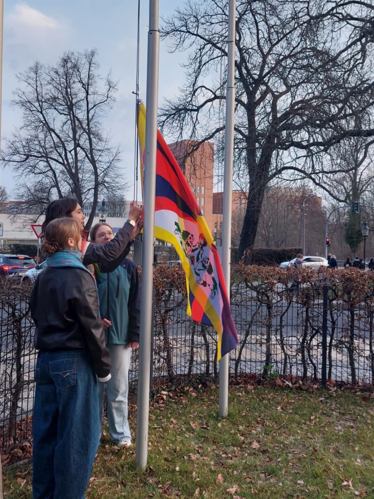 In Abstimmung mit dem Bürgermeister, Herrn Seltmann, hissten wir bereits zum 18. Mal die tibetische Flagge an unserer Schule. In Deutschland beteiligten sich wieder über 400 Städte, Gemeinden und Landkreise an der landesweiten Aktion.